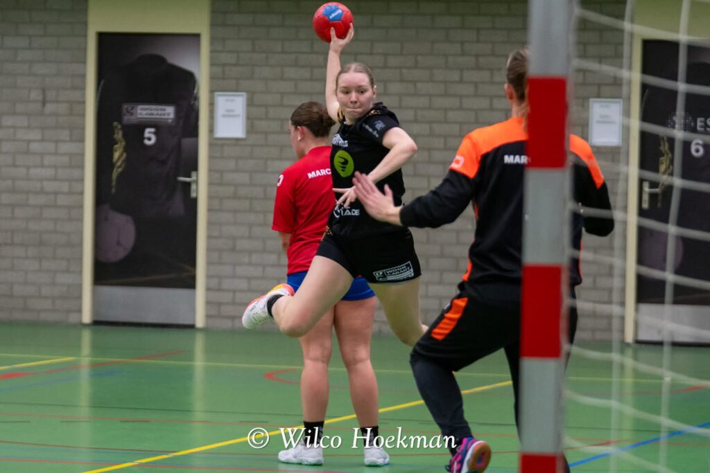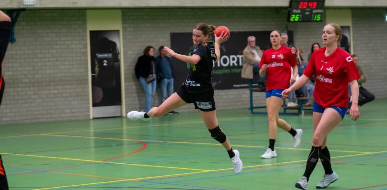En dat was terug te zien in de eerste helft. De dames startten scherp, kwamen hun afspraken na en speelden met veel tempo. De dekking stond zoals we het hele seizoen gewend zijn….solide. In de aanval werd er lekker veel gescoord en zelfs onze nieuwe wissel leverde direct resultaat op. Met een ruime voorsprong gingen we de rust in.
