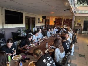 De allerlaatste wedstrijd van het seizoen stond op het programma en die wilden onze dames natuurlijk in stijl afsluiten tegen DSS. De voorbereiding begon al goed..met z’n allen eten in de kantine